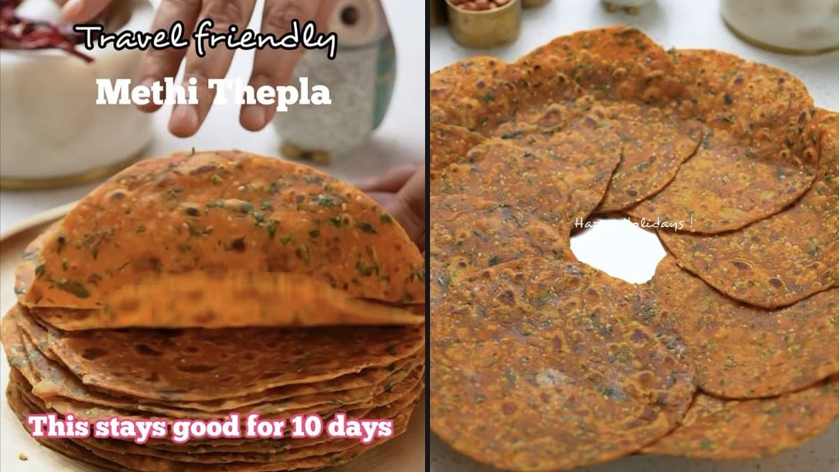 प्रवास केल्याने बर्याचदा अन्वेषणाचा आनंद होतो, परंतु सोयीस्कर, पौष्टिक आणि मधुर स्नॅक्स शोधण्याचे आव्हान देखील येऊ शकते. त्यासाठी जो काही चवदार उपचारांशिवाय सहलीची कल्पना करू शकत नाही, नम्र थेप्ला हा एक गेम-कारवाई आहे. ही भारतीय फ्लॅटब्रेड, पारंपारिक, एक प्रवासी-अनुकूल स्नॅक आहे जी पौष्टिक आणि लांब लांब दोन्ही आहे, ज्यामुळे ते रस्ता ट्रिप, भाडेवाढ किंवा उड्डाणे योग्य बनतात. संपूर्ण गव्हाचे पीठ, मसाले आणि शाकाहारी पदार्थांनी बनविलेले हे कोणत्याही प्रवासासाठी एक चवदार सहकारी आहे. इन्स्टाग्रामवर सामायिक केलेल्या व्हिडिओमध्ये, सामग्री निर्माता अरुना विजय यांनी ही मधुर पदार्थ बनवण्यासाठी सोपी रेसिपी सामायिक केली. तिने लिहिले, “ट्रॅव्हल प्लॅन या थेप्लास – थेप्लास – थेप्लास – द -टू -अप 10 दिवस जात आहेत आणि एकूण जीवनवाहक आहेत, विशेषत: जर आपण शाकाहारी असाल तर, या गोष्टी लक्षात घेतल्या आहेत. मी त्या सर्व गोष्टी तयार केल्या आहेत.