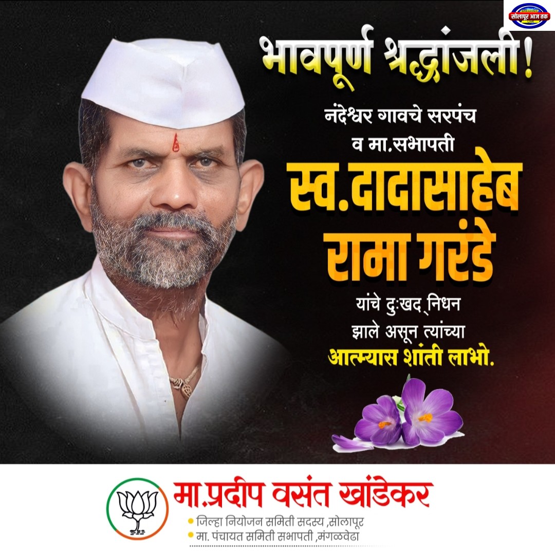 मंगळवेढा तालुका पंचायत समितीचे माजी उपसभापती स्व. दादासाहेब गरंडे यांना आमदार समाधान आवताडेंची श्रद्धांजली मंगळवेढा तालुका पंचायत समितीचे माजी उपसभापती तथा ज्येष्ठ लोकप्रतिनिधी स्व.दादासाहेब गरंडे यांचे दुर्दैवी निधन झाल्याने मंगळवेढा तालुक्यावर शोककळा पसरली आहे. त्यांच्या निधनाने सामाजिक व राजकीय क्षेत्रात हळहळ व्यक्त केली जात असून, सर्व स्तरांतून श्रद्धांजली वाहण्यात येत आहे. या पार्श्वभूमीवर आमदार समाधान आवताडे यांनी नंदेश्वर येथील गरंडे यांच्या निवासस्थानी भेट देऊन स्व. दादासाहेब गरंडे यांना भावपूर्ण श्रद्धांजली अर्पण केली. यावेळी त्यांनी गरंडे कुटुंबीयांची भेट घेऊन भाऊसाहेब गरंडे आणि माजी सरपंच बाळासाहेब गरंडे यांचे सांत्वन केले.