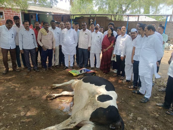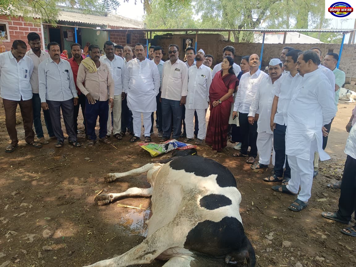 नंदेश्वर / प्रतिनिधी : मंगळवेढा तालुक्यातील नंदेश्वर परिसरात झालेल्या अवकाळी पावसामुळे शेतकरी व नागरिकांचे मोठ्या प्रमाणात नुकसान झाले आहे. अचानक झालेल्या पावसाने द्राक्ष उत्पादनासाठी उभारण्यात आलेल्या बेदाणे शेडचे मोठे नुकसान झाले असून, शेतकऱ्यांचे आर्थिक गणित पूर्णपणे कोलमडले आहे. याचदरम्यान नंदेश्वर येथील शेतकरी धोंडीराम गरंडे यांची गाय वीज पडून मृत्यूमुखी पडली व तसेच नंदेश्वर येथीलच प्रसाद कसबे यांची तीन जनावरे अवकाळी पावसामुळे दगावली असल्याची दुर्दैवी घटना घडली आहे. घटनेची माहिती मिळताच आमदार समाधान आवताडे यांनी तात्काळ घटनास्थळी भेट देऊन नुकसानग्रस्त भागाची पाहणी केली. त्यांनी प्रत्यक्ष शेतकऱ्यांशी संवाद साधत त्यांच्या अडचणी जाणून घेतल्या.