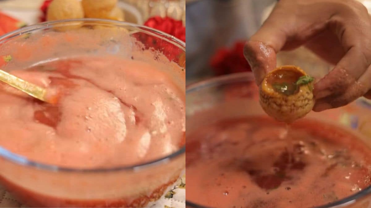 पाई पुरी सामान्यत: चिंचे (आयएमएलआय) किंवा पुदीना (पुडिना) पाण्यासह दिले जाते, ज्यामुळे ते एक टांगर आणि मसालेदार चव देते. हे टरबूज पॅनी पुरी क्लासिक स्नॅकला एक मनोरंजक बदल देते, कारण ते गोड बाजूला आहे. टरबूज हा तारा घटक राहिला आहे, तर पाण्यामध्ये चाट मसाला, लिंबाचा रस आणि पुदीना देखील समाविष्ट आहे, ज्यामुळे त्याला चिडखोरपणाचा इशारा देण्यात आला आहे. ही पॅनी पुरी फक्त आपल्या डोळ्यांवरील उपचार होणार नाही परंतु आपल्या चव कळ्या – आपल्याला नक्कीच प्रयत्न करून दिलगीर होणार नाही!