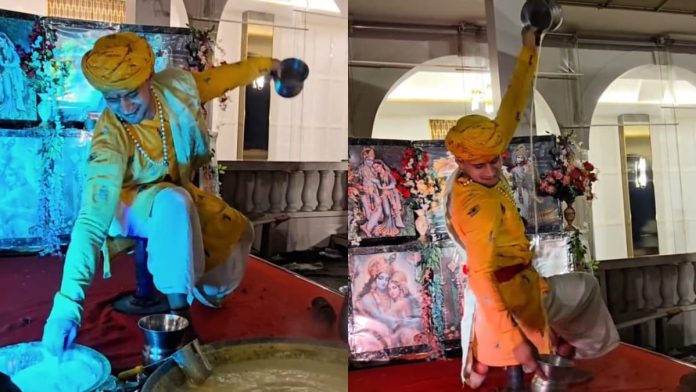 जेव्हा व्हिडिओ सुरू होतो, तेव्हा तो एका हातात पारंपारिक चरण जगासारखा जहाज ठेवतो. दुसर्‍याबरोबर तो त्याच्या कामगिरीमध्ये नाट्यसृष्टीचा स्पर्श जोडण्यासाठी पात्रात साखर असल्याचे दिसते. तो बॅकलेस रिव्हॉल्व्हिंग स्टूलवर बसला आहे आणि म्हणूनच तो त्याच्या हावभावांमध्ये एक प्रकारचा लय जोडण्यास सक्षम आहे. तो त्याच्या दुसर्‍या हातात एक समान जग घेतो आणि नंतर दूध एकाकडून दुसर्‍याकडे हस्तांतरित करण्यास सुरवात करतो. परंतु तो एक विस्मयकारक पद्धतीने करतो – त्याच्या जागेवर फिरत असताना आणि दोन्ही जहाजांना एकमेकांपासून बरेचसे ठेवत असताना. कधीकधी, दूध बॉलिवूड करत नाही हे जवळजवळ अशक्य वाटते. परंतु त्याच्या सराव केलेल्या हालचाली सुनिश्चित करतात की त्याचा वेग असूनही द्रव एका जहाजातून दुसर्‍या पात्रात योग्य प्रकारे वाहतो. अधिक जाणून घेण्यासाठी खालील संपूर्ण व्हिडिओ पहा:
